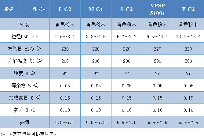 1、发气效率高。产品纯度高,发气量大、性价比高,属高效发泡剂。