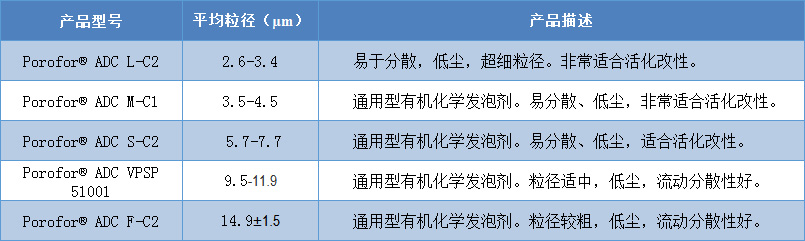 5、使用性优。粒径均匀、分布范围窄,发泡性能稳定可靠;分解后固体残渣无色无味无污染,不影响制品外观及性能。